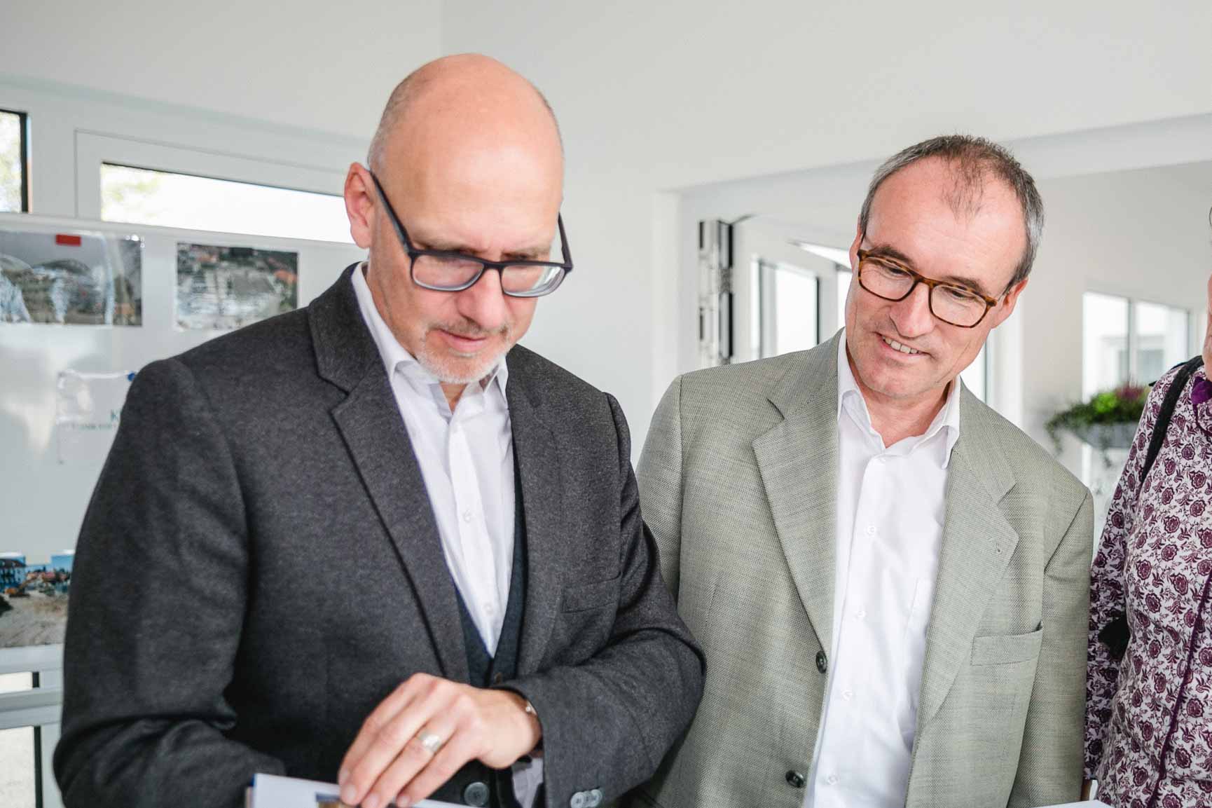Landrat Franz Meyer (ganz rechts) und Jürgen Fundke, Erster Bürgermeister von Bad Griesbach.