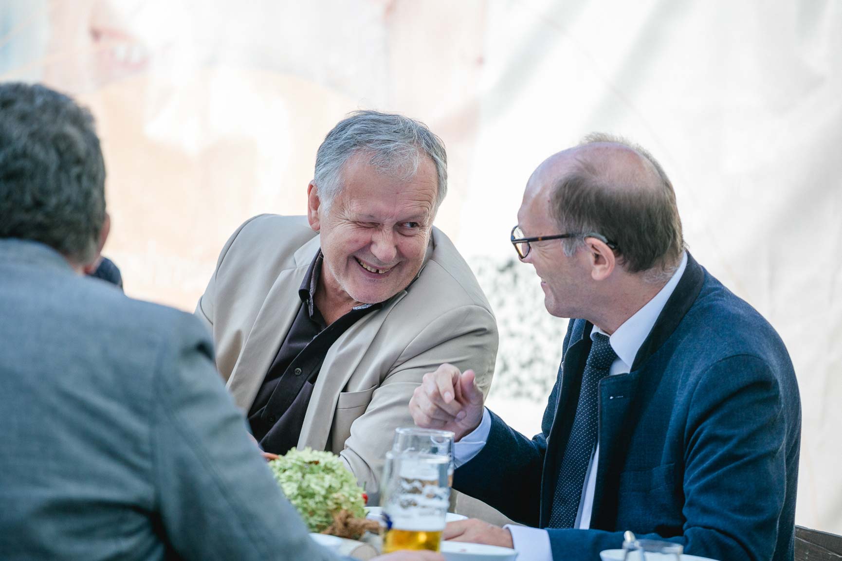 Der Passauer Domkapitular Gerhard Auer (rechts) mit dem ehemaligen Chefarzt Dr. Christoph Garner (Mitte) und einem Gast.